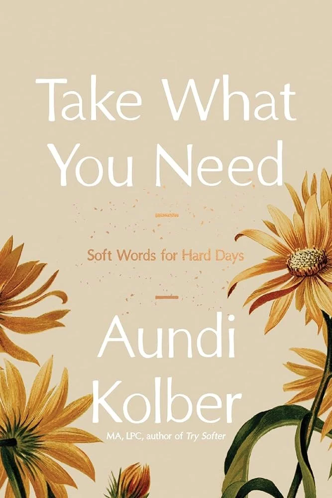 A slim volume of encouragement, Take What You Need, combines some of the concepts in Kolber’s other works (Try Softer and Strong Like Water) into a short, poetic, and reflective read.